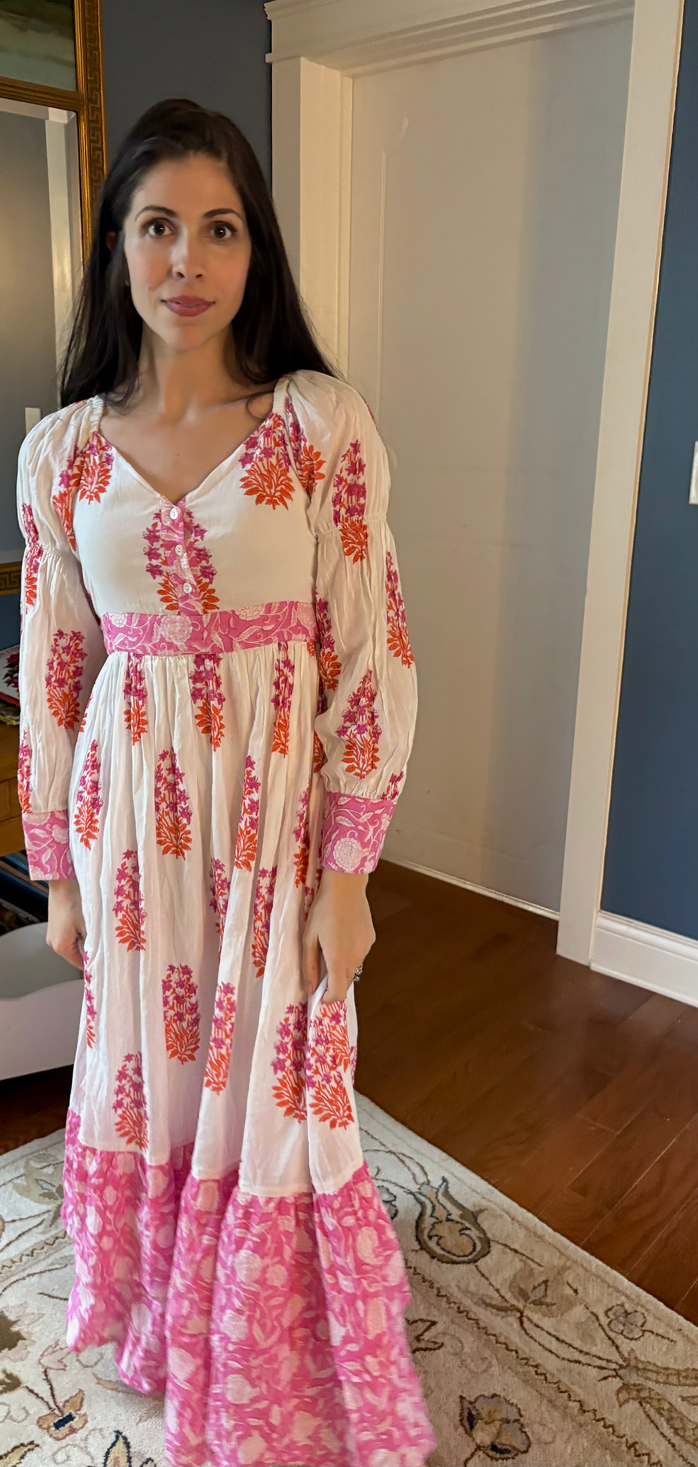 using ancient hand-block printing techniques. Designs are carved into wood and then printed by hand, making it a sustainable and environmentally resourceful art form. Each piece is unique, has peculiar variations and has been touched by a master of this ancient art-from.